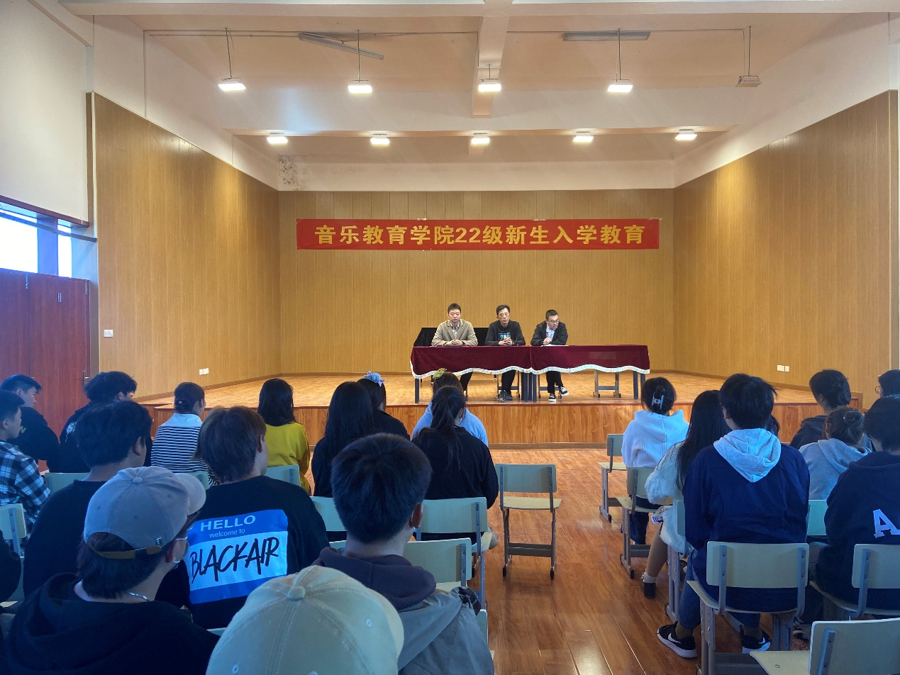 为使2022级新生尽快适应大学新生活,音乐教育学院精心策划并开展了2022级新生入学教育会。10月13日,2022级音乐表演专业新生入学教育于音乐教育学院实训中心音乐舞蹈厅举行。音乐教育学院副院长沈春雷,教学助理水九清,音乐教研室主任吴乾康及2022级音乐表演新生参加了会议。