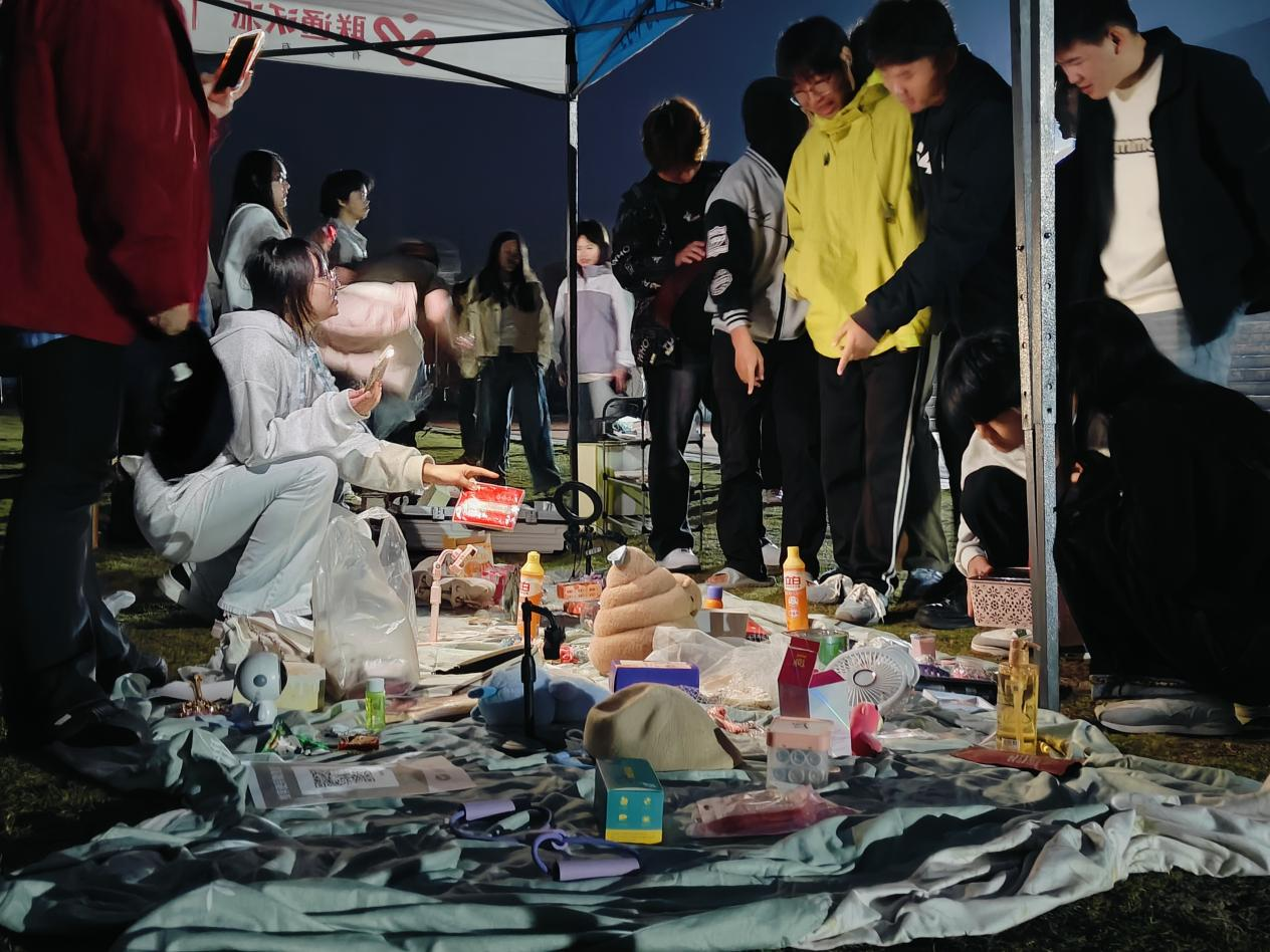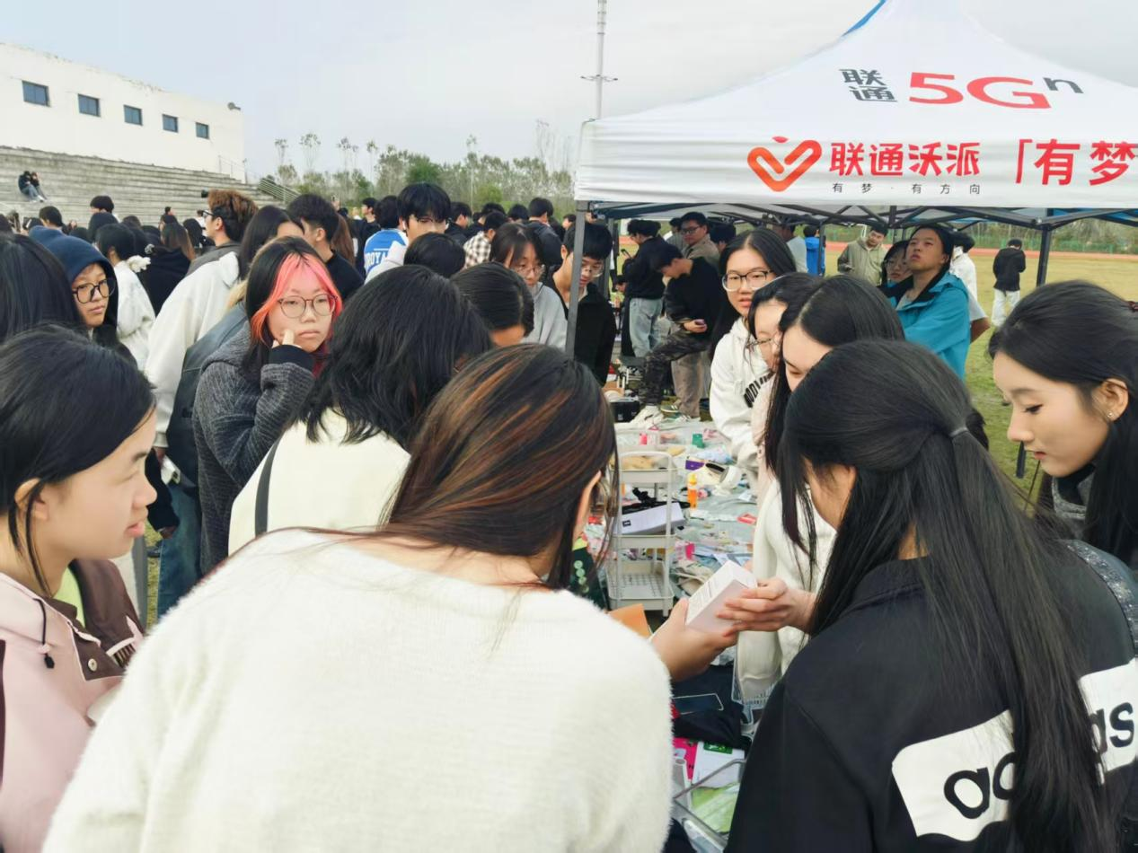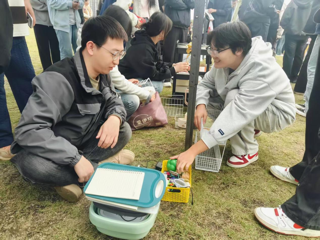 “跳蚤”市场同样热闹非凡。琳琅满目的摊位前,同学们或驻足挑选心仪物品,或热情交流闲置好物,欢声笑语不绝于耳。大家一边欣赏精彩演出,一边参与轻松愉快的交易互动,形成“观演+交流”的双重体验。这种创新形式不仅搭建了展示才艺的舞台,也促进了资源的循环共享,进一步增强了同学们的参与感、归属感和校园生活的趣味性。
