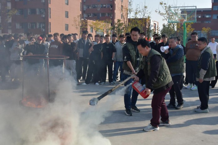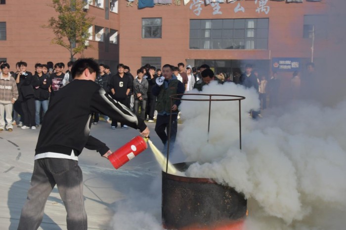 随后,学校特邀的安徽永安达消防科技工程有限公司的专业人员为师生进行现场教学,详细介绍火灾种类、灭火器分类、工作原理等理论知识。
