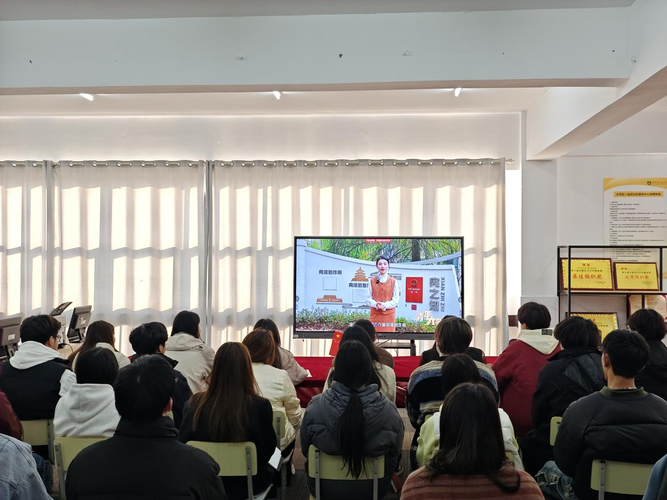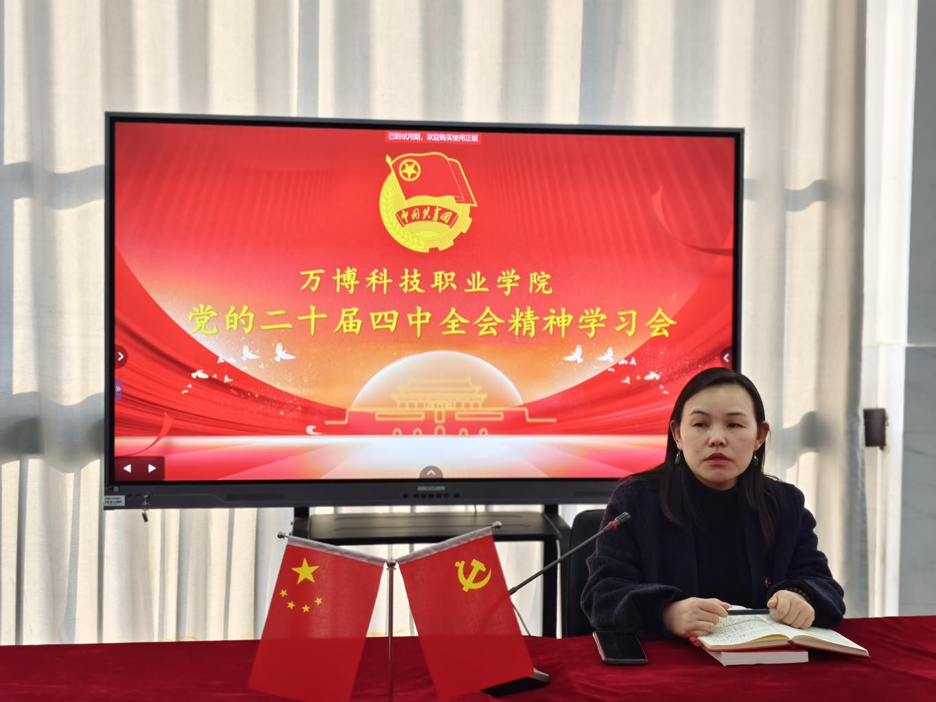 学习会上,王媛媛围绕全会精神主线,结合青年学生成长实际,对全会内容进行了系统解读和精准阐释。与会师生共同观看了“青年大学习”党的二十届四中全会精神专题解读视频,系统学习了全会关于“十五五”时期经济社会发展的战略部署、主要目标和重点任务,并结合校园生活与学术实践展开深入分析。她强调,团学骨干作为青年中的中坚力量,要深刻领悟“两个确立”的决定性意义,牢记“国之大者”,将个人理想追求融入中国式现代化建设的生动实践,在科技创新、文化传承、社会服务等领域积极担当作为。