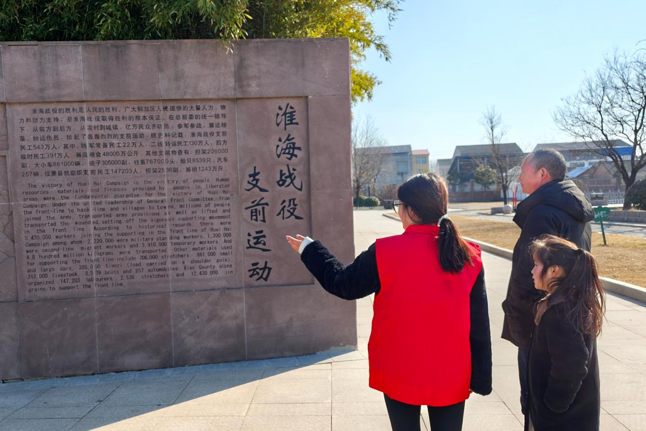 活动当天,队员们怀着崇敬之心步入旧址,依次参观会议旧址、历史陈列和珍贵资料。透过一件件实物、一张张图片、一段段文字,大家仿佛穿越回那段烽火连天的岁月,深刻感受到革命先辈在极端艰难条件下展现出的坚定信仰与无畏担当。队员们主动化身志愿讲解员,与前来参观的游客热情互动,耐心讲解关于淮海战役的历史。他们用青年的视角解读红色历史,以青春的话语传递革命精神,既有温度又有深度,赢得了游客们的一致好评。