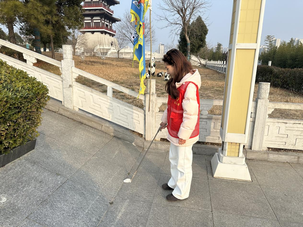 灵璧钟馗文化园彰显灵璧独特人文底蕴的重要地标,是展示家乡风貌的窗口。队员们手持垃圾袋、垃圾夹等工具,分工明确、默契配合,重点对园区步道、景观池塘、文化展馆周边等核心区域进行细致清理。他们认真捡拾散落的烟头、塑料瓶、果皮纸屑等垃圾,对隐藏在草丛、石缝中的杂物逐一清理。在清捡垃圾之余,队员们还化身文化传播与文明倡导的使者,向过往游客发放文明游览倡议书,结合钟馗文化中惩恶扬善、守正护美的精神内核,耐心讲解文明游览的意义,倡导游客自觉爱护景区环境、做到垃圾不落地,以文明行动守护共同的文化家园。