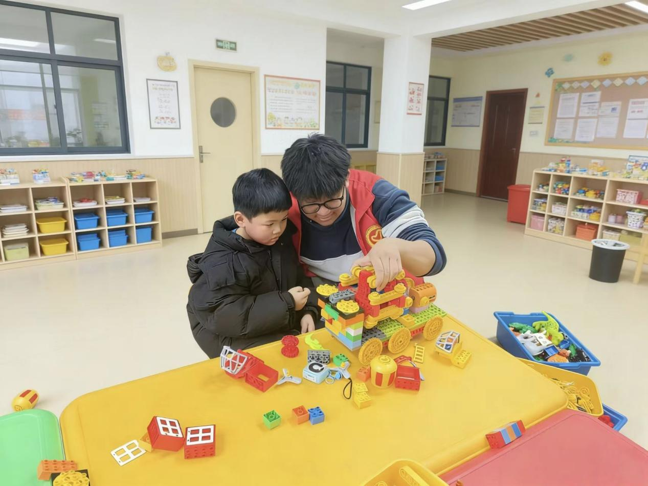 随后,实践队走进全椒县社区,开展了一场别开生面的乐高搭建公益课堂。队员们根据孩子们的年龄特点和兴趣需求,精心设计主题内容,耐心讲授搭建技巧,鼓励孩子们在动手实践中激发想象、释放创意。一块块积木在孩子们手中逐渐成型,变成飞船、城堡、小动物……课堂里欢声笑语,洋溢着探索与创造的喜悦。在队员们的陪伴与引导下,孩子们不仅锻炼了动手能力和逻辑思维,也收获了专注与协作带来的成就感,为假期生活增添了一抹缤纷亮色。
